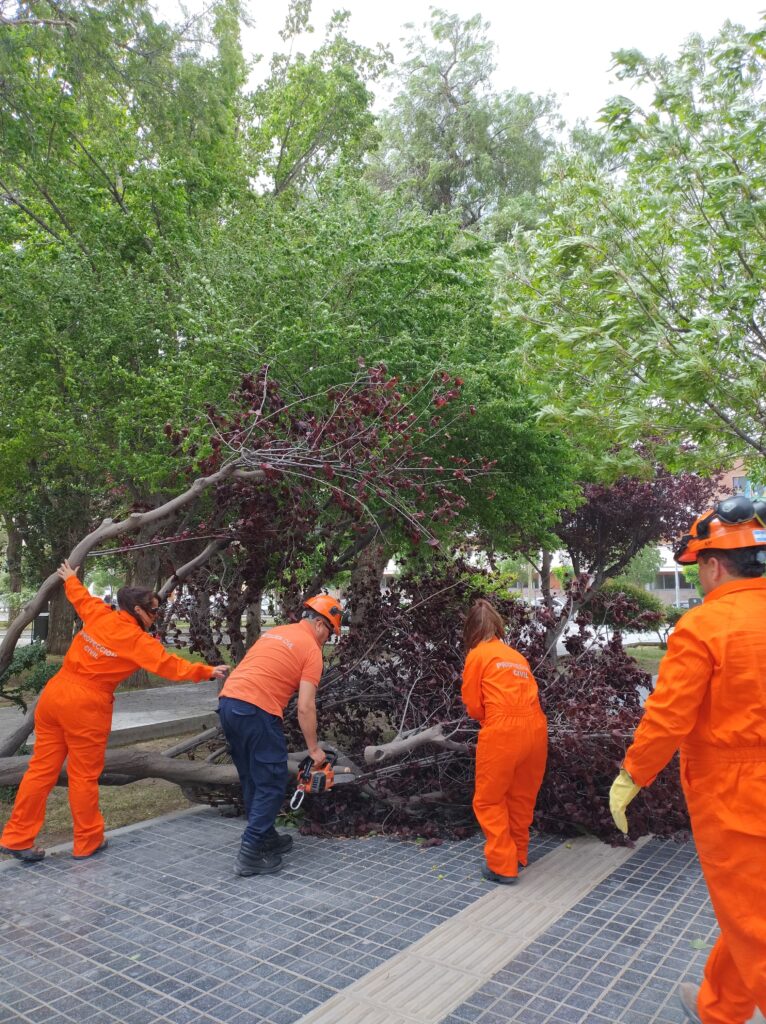 Las tareas comprendieron intervenciones también por tanques de agua desestabilizados, despeje de ramas y árboles en ruta 7, tala de árboles con riesgos de caídas, entre otras acciones.